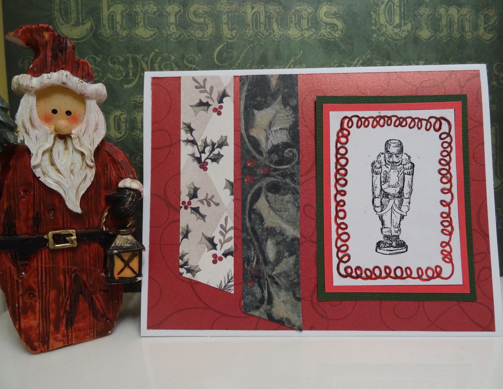 I get to use this cute little Nutcracker Christmas card for three challenges. First I was inspired by the sketch #311 at "TUESDAY MORING SKETCHES"