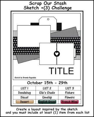 I used the sketch plus three challenge at "SCRAP OUR STASH"