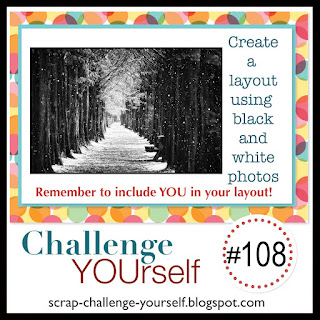 I'm entering this in the challenge at "SCRAP CHALLENGE YOURSELF" the challenge was to use a Black and White photo and of course to include a picture of yourself.